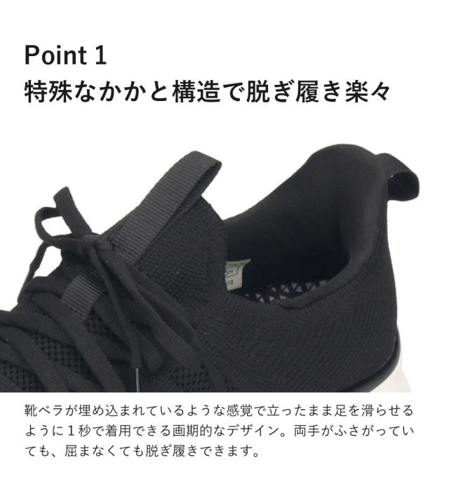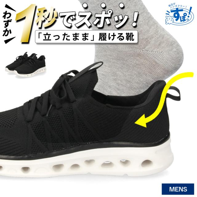 手を使わず履ける靴 メンズ 立ったまま履ける靴 ハンズフリー スリッポン スニーカー 軽い 屈曲性 履きやすい 靴 ゴム紐 ブラック 黒 楽すぽっ Parade 51704