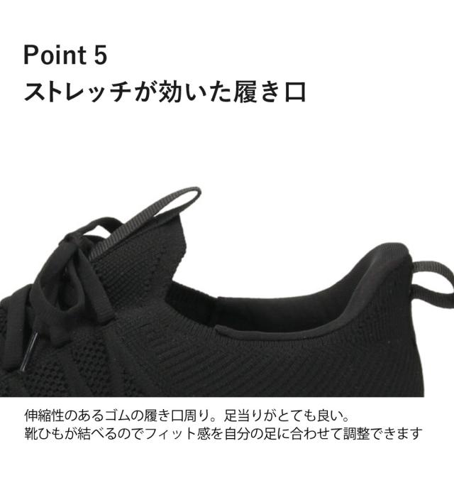 | 毎日ハンズフリー。手を使わずサッと履ける! 楽すぽシリーズにスタイリッシュなデザインが登場! 忙しい毎日を快適に。当店のハンズフリー スリップイン スニーカーは、手を使わずスポッと履ける新感覚。 荷物が多い時も、手を使わず立ったままスポッと履けるため、時短になり、腰や膝に負担をかけたくない方や子育て中の方にも最適。 玄関のストレスをゼロにします。 EVAアウトソールで軽量かつ屈曲性に優れ、5mm以上のカップインソールが足をやさしく包み込み、長時間の歩行も快適にサポートします。 シューレース付きで、足に合わせてフィット感を調節できます。 シンプルなデザインでどんな服装にも馴染み、幅広く活躍します。 |