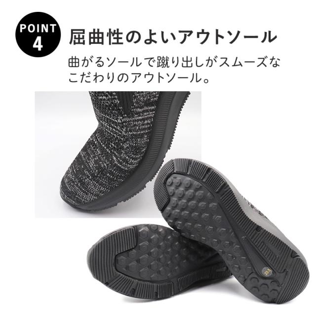 アッパーはニット素材で通気が良く、伸縮性に優れているので足にフィットし快適仕様