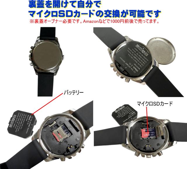 【内蔵マイクロSDカード】裏蓋オープナーがあればご自身でも交換取り出しが可能です(裏蓋オープナーはAmazonなどで1,000円前後で売ってます)
