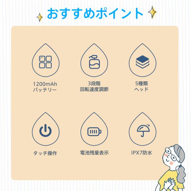 【キーワード】コンパクト 激安 母の日 父の日 新生活 おしゃれ セール シンプル 便利 無地 長持ち 耐久性 新作 人気 定番 敬老の日 多機能 軽量 プレゼント 電動ブラシ コードレス 掃除ブラシ 5種類ヘッド付き IPX7防水 電池残量表示 大容量バッテリー 3段階回転速度調節 パワフル 強力 高速回転 スポンジ 浴槽 台所 キッチン 床 フローリング タイル 溝 隙間 トイレ 便利 取り替えブラシ エアコン 汚れ落とし