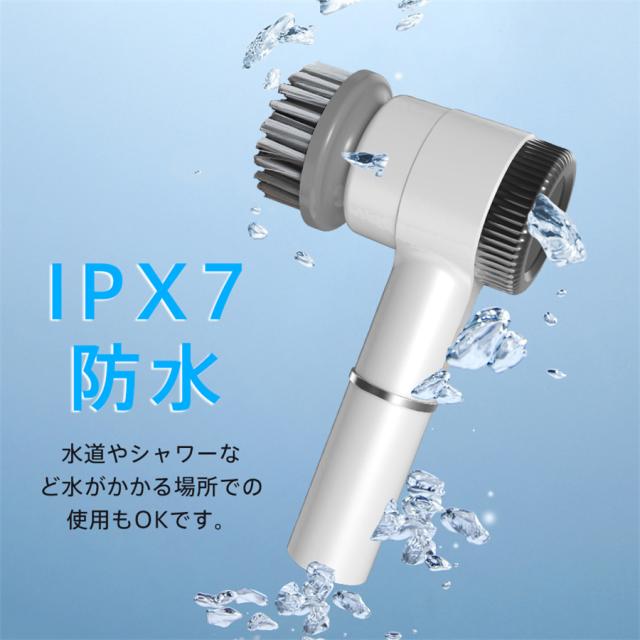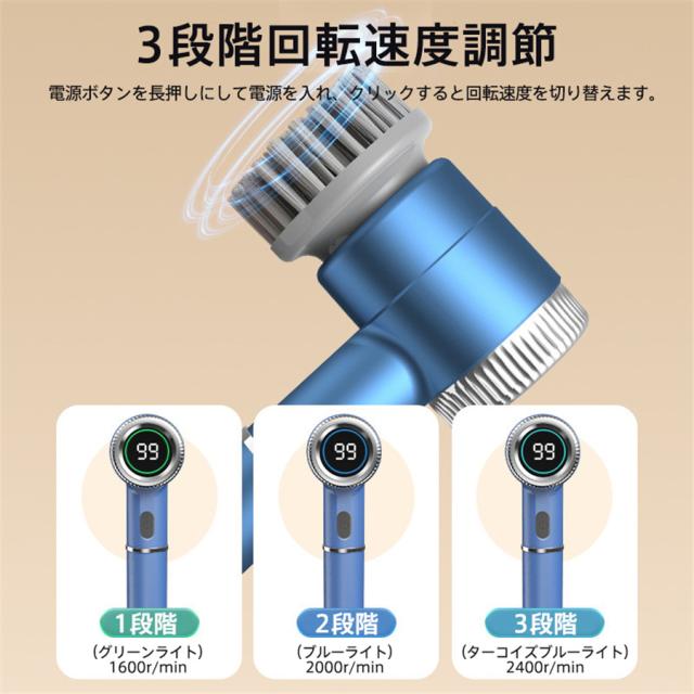 電動ブラシ 掃除ブラシ 5種類ヘッド付き コードレス IPX7防水 電池残量表示 3段階回転速度調節 パワフル スポンジ キッチン 母の日