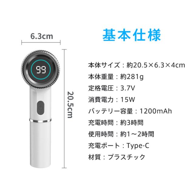 電源ボタンを長押しにして電源を入れ、クリックすると回転速度を切り替えます。