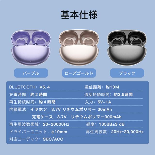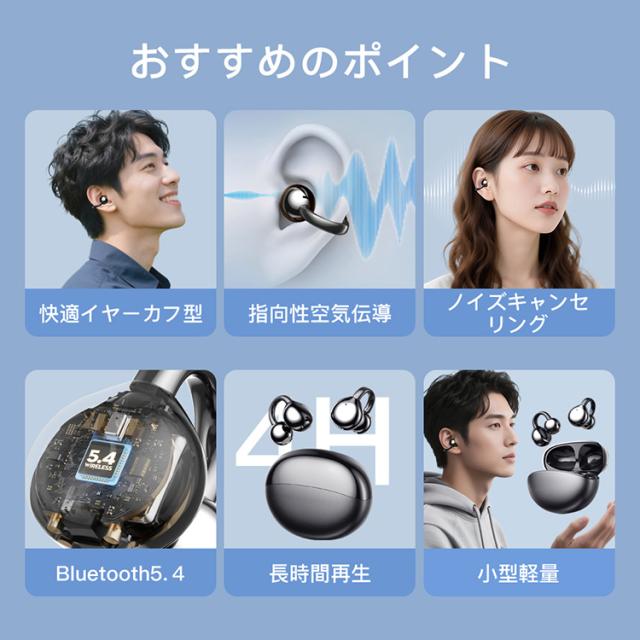 「2025最新」 ワイヤレスイヤホン bluetooth イヤホン ノイズキャンセリング 耳を塞がない BLUETOOTH5.4 ブルートゥース 安定 骨伝導イヤホン 瞬時接続 自動ペアリング マイク内蔵 オープンイヤー型 iPhone/Android ヘッドホン Type‐C充電 HiFi高音質 軽量 小型