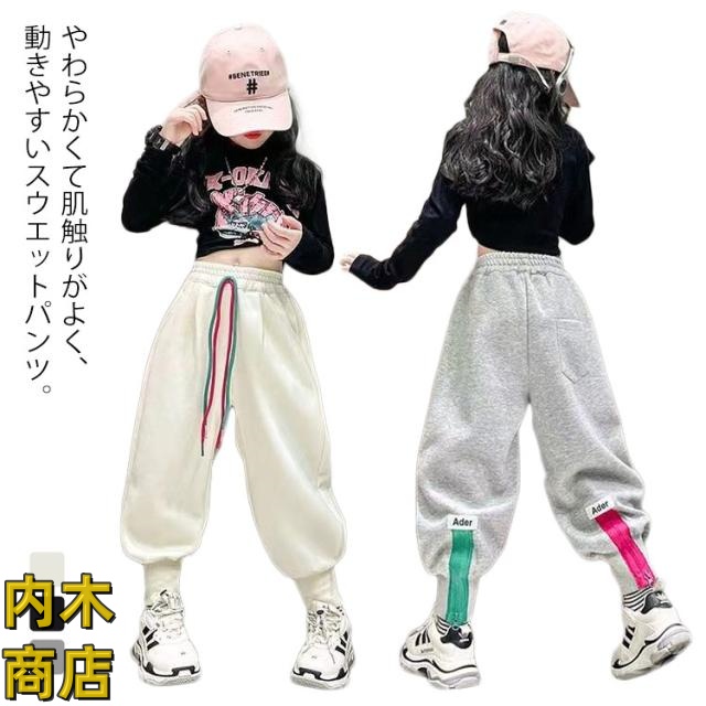 ウエストゴム 裏起毛 ヒップホップ 春 女の子 ジュニア 配色 スウエット ダンスパンツ ファスナー付き ダンスパンツ ガールズ 冬 ロングパンツ 秋 ダンスウエア