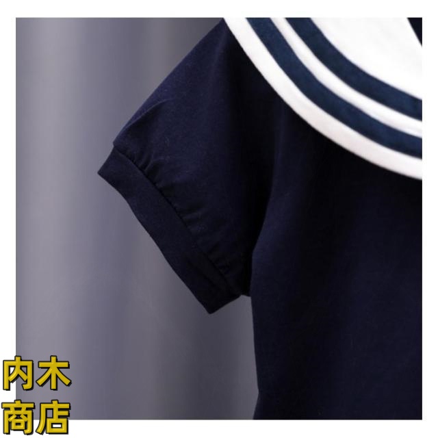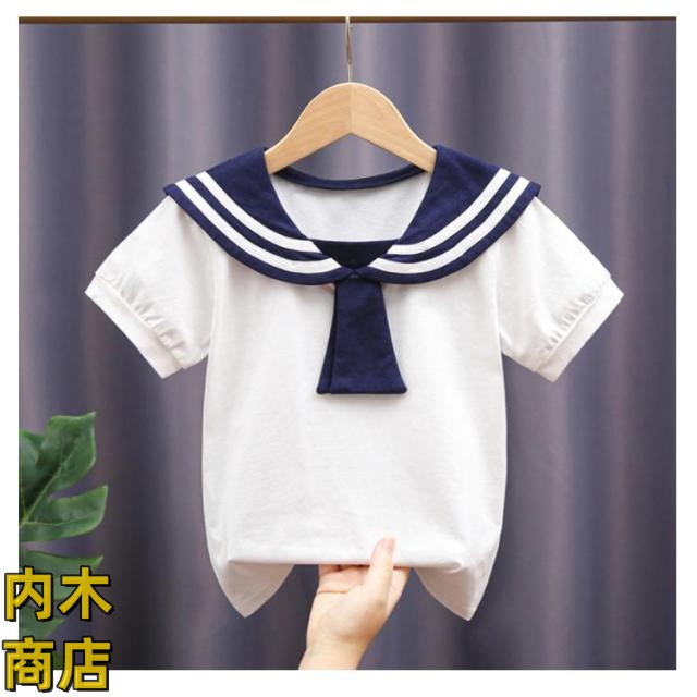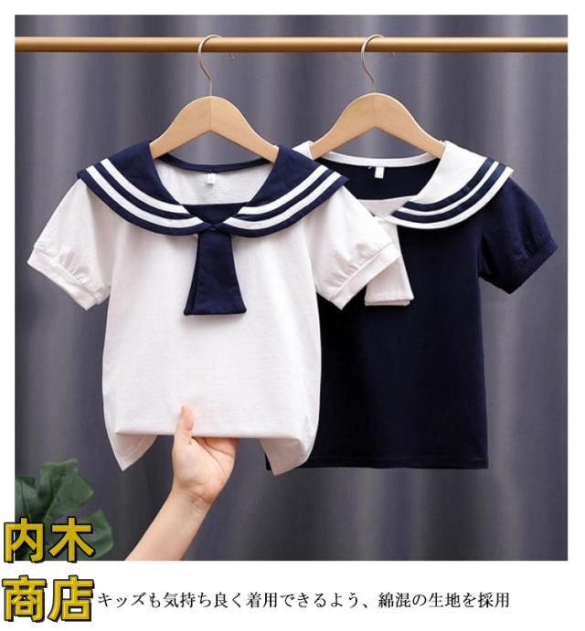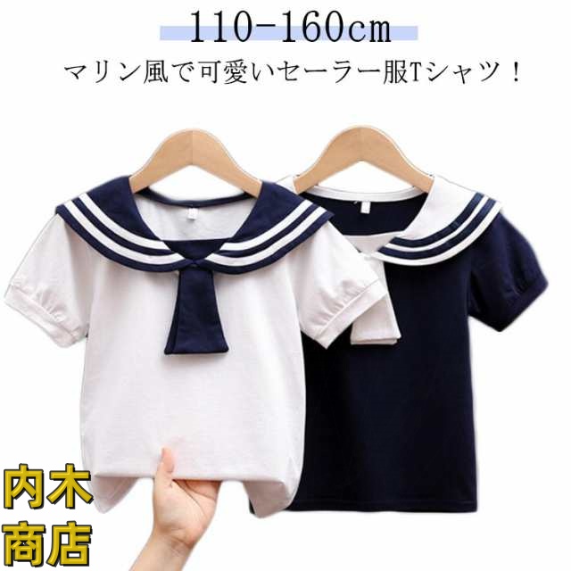 | 110cm 120cm 130cm 140cm 150cm 160cm マリン風で可愛いセーラー服Tシャツ! キッズも気持ち良く着用できるよう、綿混の生地を採用 パンツもスカートもOKな、合わせるボトムスを選ばない着まわし力の高いアイテム | |