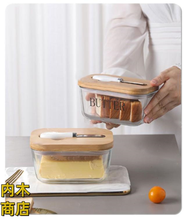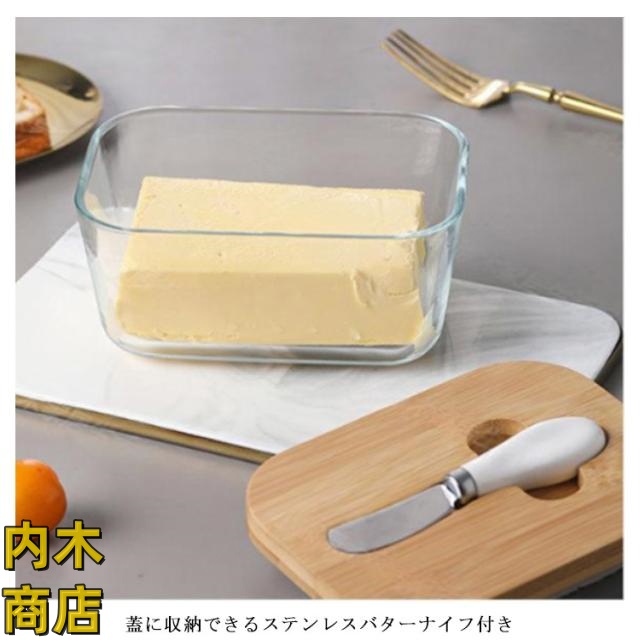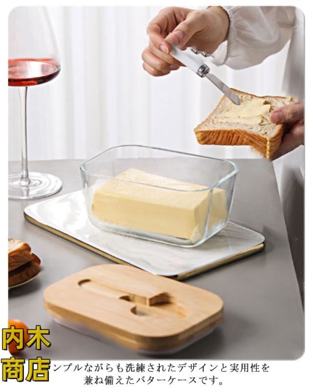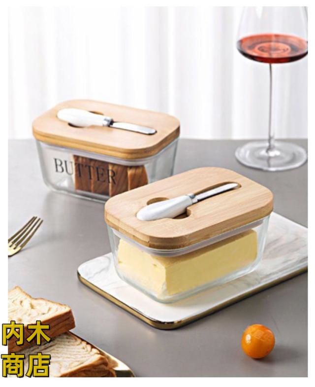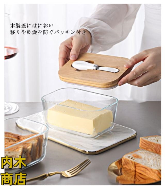 ランキング常連 おしゃれ 収納便利 バターカッターケース バターカットケース バターナイフ付 カット バターケース 木製蓋 カッター付き バター容器 ステンレスナイフ 保存容器 バター入れ バターカット 食洗機対応 ガラスケース ナイフ付き 450 バター