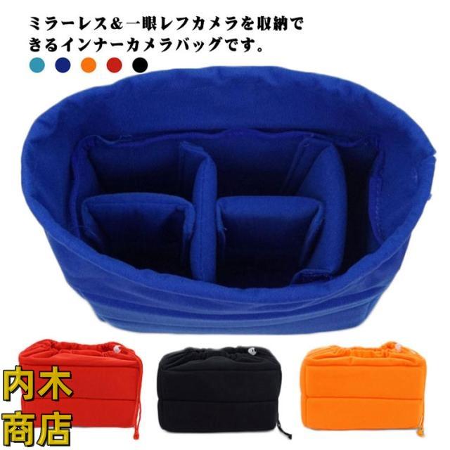 一眼レフ カメラバッグ 巾着 収納バック カメラバッグ 撥水加工 女子 おしゃれ カメラケース オレンジ ブラック カメラケース 一眼レフ 収納バッグ 仕切り インナーバッグ ソフトクッションボックス 旅行 ミラーレス レッド