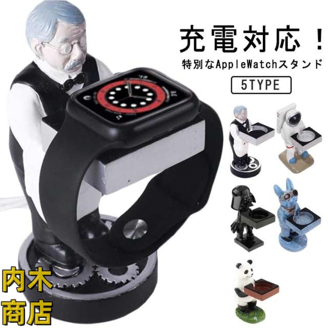 | サイズについての説明 | 執事:13.5*6cm 宇宙飛行士:11*5cm 犬:14*5cm 黒サムライ:14*4.5cm パンダ:13*5.5cm ※サイズ表の実寸法は商品によって1-2cm程度の誤差がある場合がございます。 ※対応機種:Apple Watch Series 1/2/3/4/5/6/7/8/se ※スタンドのみの販売になります、充電器(コード)は付属されておりません。 |