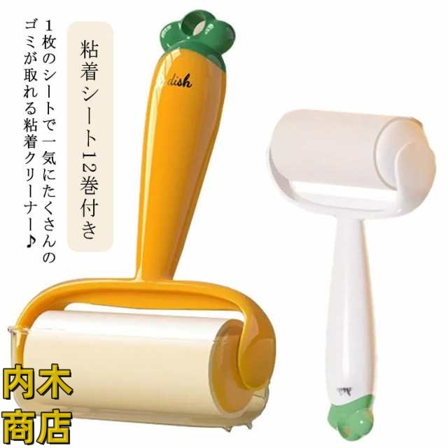 | 1枚のシートで一気にたくさんのゴミが取れる粘着クリーナー♪ とってもキュートな持ち手は、フックにかけたり、そのままインテリアとして飾っておいたり◎ 隠さずにどこにでも置いておけるので、玄関や車など場所を問わずに使いたいときにさっと取り出せて便利です。 洋服やカーペットのお掃除にはもちろん、ペットの毛が付いた時にもコロコロすればすっきりキレイ! スペアテープ(12本セット)もご用意しており、市販リフィルにも交換できます。 おしゃれなおそうじグッズで、気持ちよく過ごせそうですね。 | |