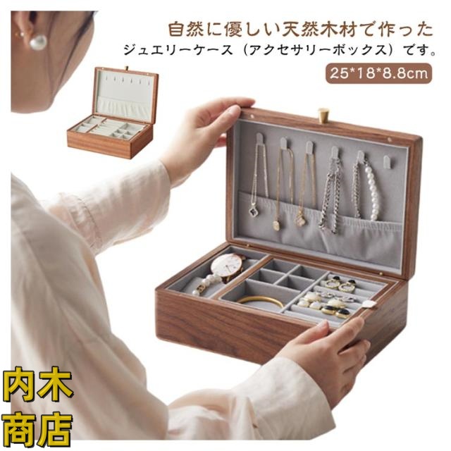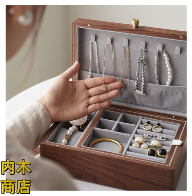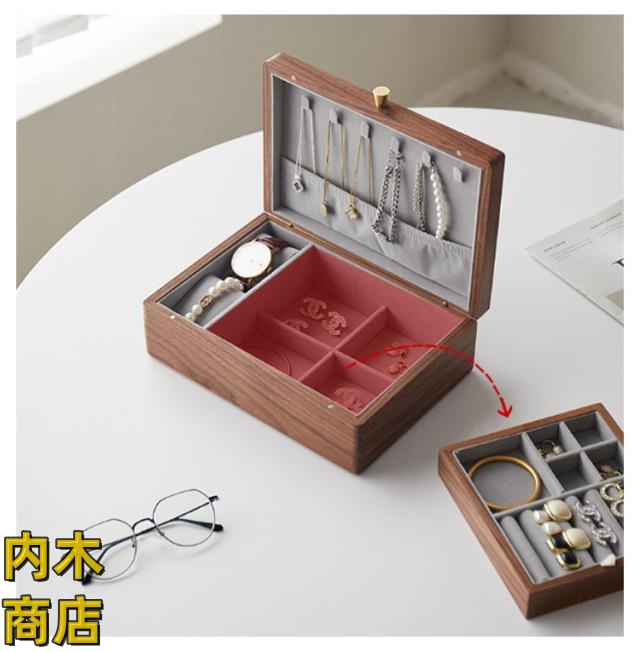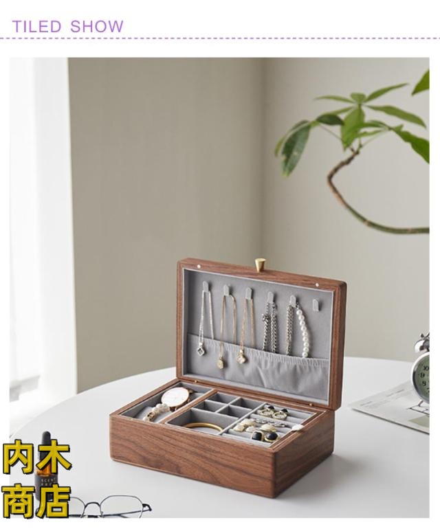 ウォールナット材 アクセサリーケース コスメボックス ピアス 北欧 おしゃれ ネックレス ケース 収納 ジュエス ジュエリーケース 雑貨 指輪 腕時計 リングケース オフィス 小物収納 木製 ジュエリーケース コスメ イヤリング 大容量 リング 収納ケース