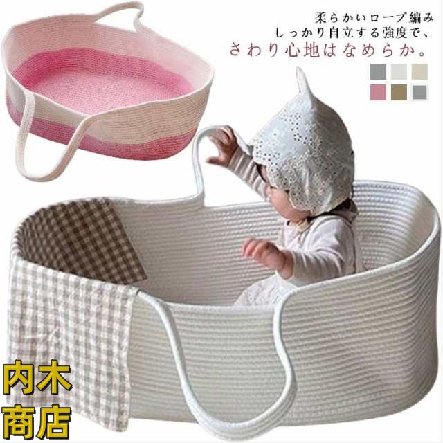 退院 ベビーベッド 籠 バスケット ベビー シンプル ギフト ベビーキャリー 赤ちゃん クーハン コンパクト 出産祝い かご 持ち運び 赤ちゃん用 ベビーバスケット ベビー用 クーファン 折りたたみ ロープ編み 添い寝 お昼寝