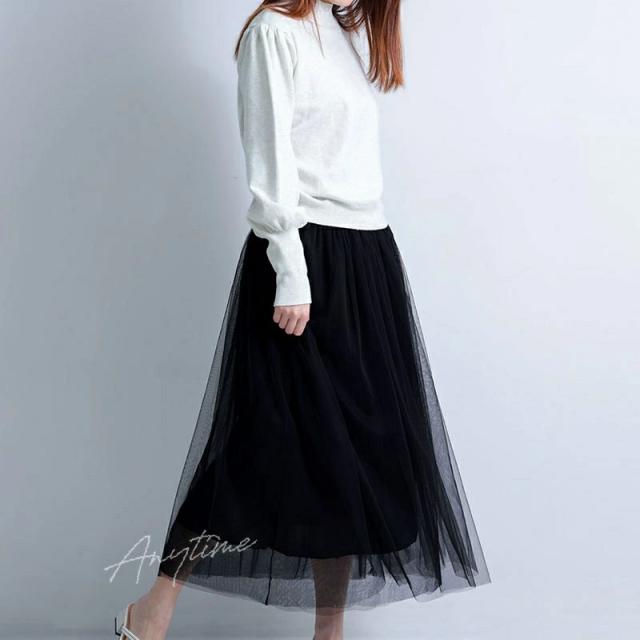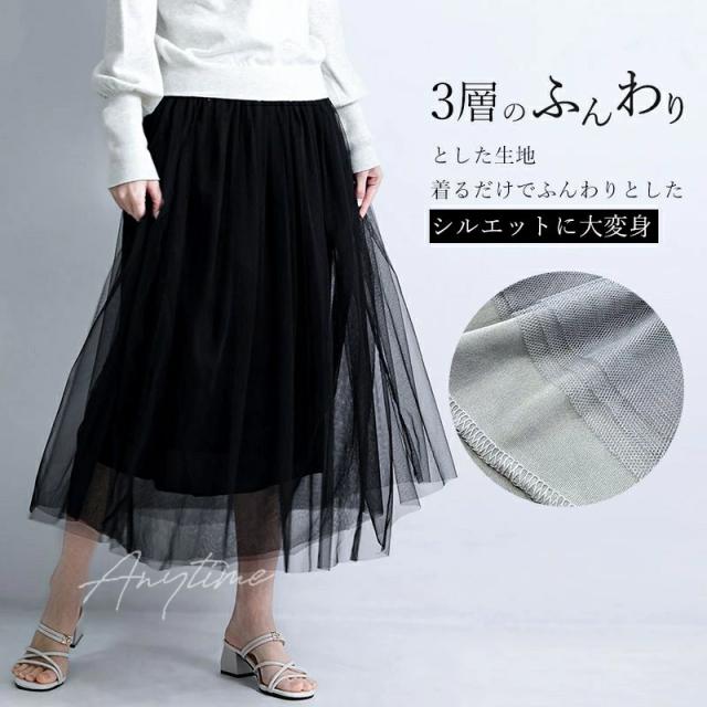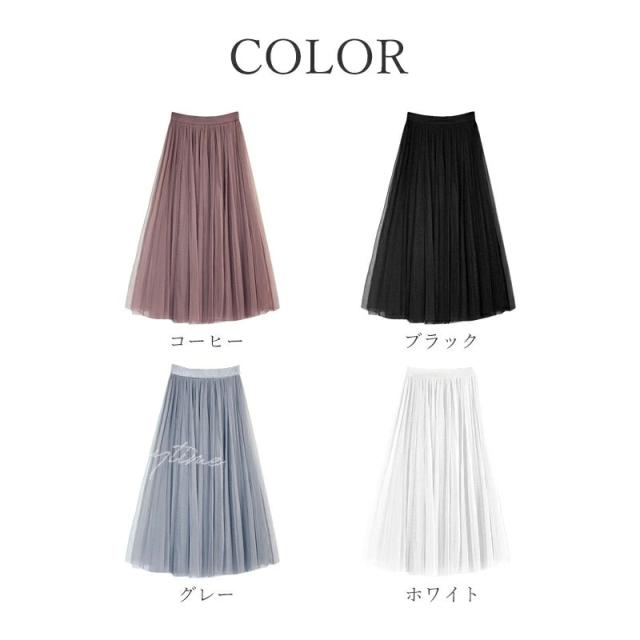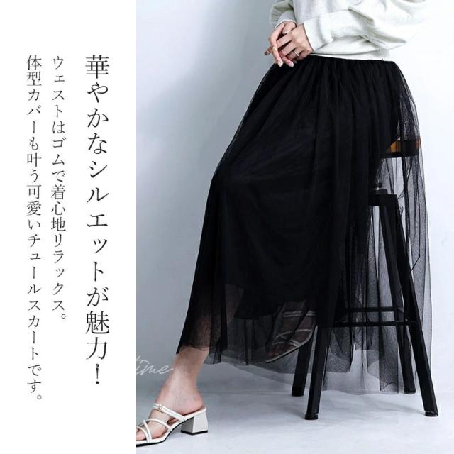 即納 チュールスカート スカート ロングスカート レディース 裏地付き ウエストゴム ボリューム マキシ丈 フレアチュールスカート ロングスカート ロング丈 秋冬 無地 透け感