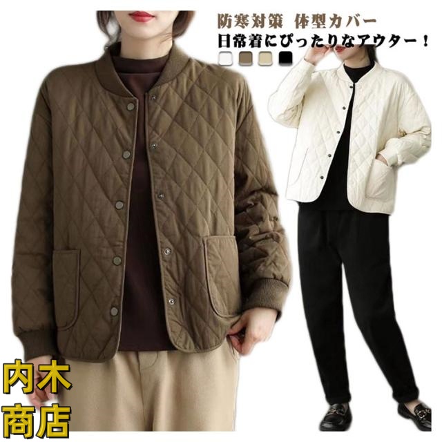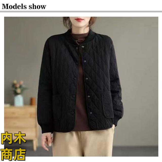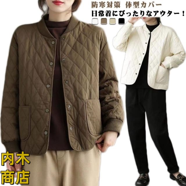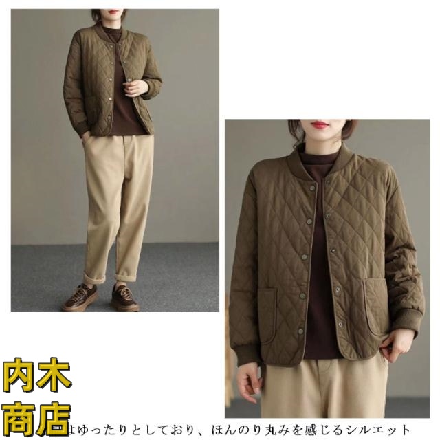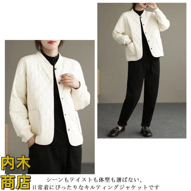 | 日常着にぴったりなアウター! 身幅はゆったりとしており、ほんのり丸みを感じるシルエット シーンもテイストも体型も選ばない、日常着にぴったりなキルティングジャケットです | |