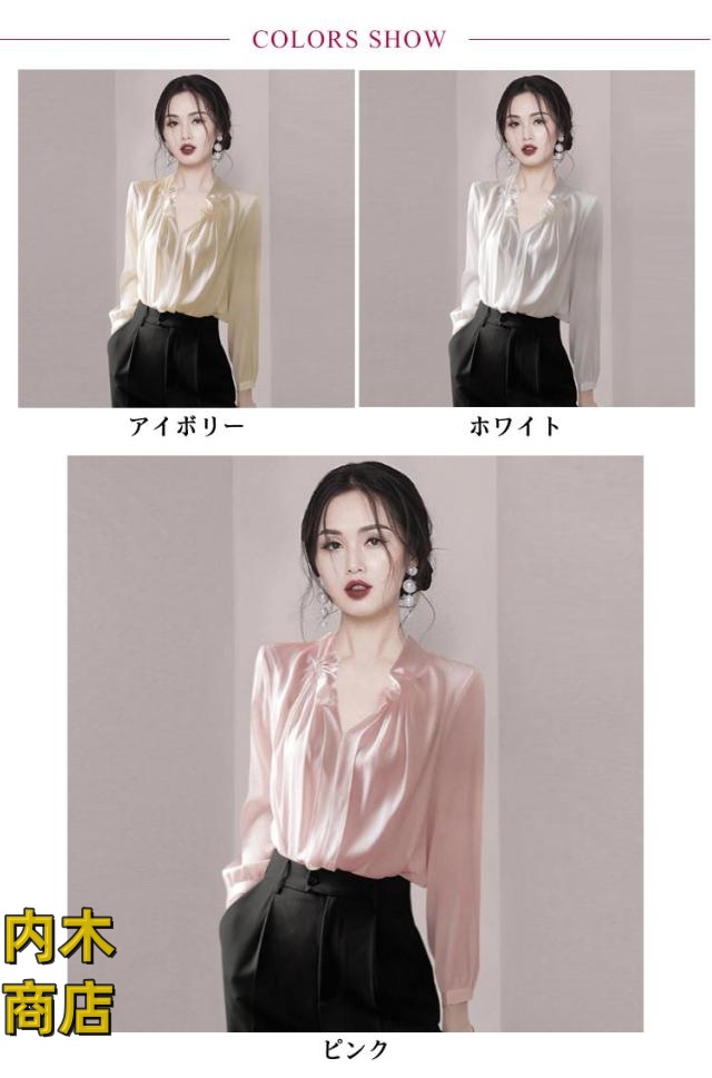 レディース 白シャツ インナー フリル アイボリー 送料無料 ホワイト ネック 小顔 長袖 シャツ トップス 通勤 ブラウス 夏 フォーマル 大人カジュアル 上品 春 秋 スーツインナー 二つの腕カバー ピンク オフィス 洗える 冬