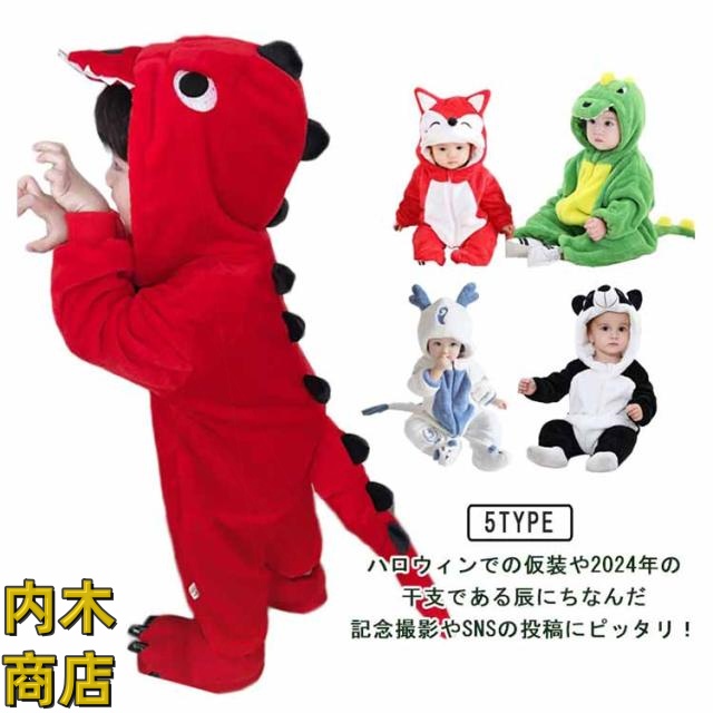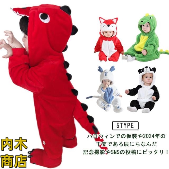 女の子 新年 ロンパース ハロウィン衣装 パンダ ベビー 厚手 秋冬 冬服 もこもこ ふわふわ 可愛い キツネ コート ドラゴン 年賀状 男の子 龍 竜 赤ちゃん 出産祝い カバーオール 新生児 恐竜 記念写真 2024年干支 辰年