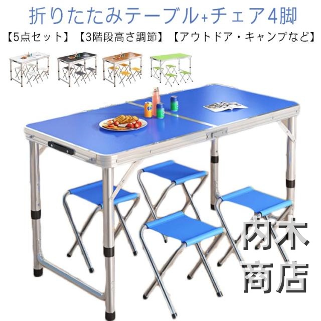 4脚 レジャーテーブル 【5点セット】折りたたみテーブル 120 キャンプ キャンプ用品 お花見 ピクニックテーブル アルミ ベンチ ベンチ 折り畳みテーブル アウトドアテーブル 運動会 軽量 高さ調節 バーベキュー アウトドア チェア
