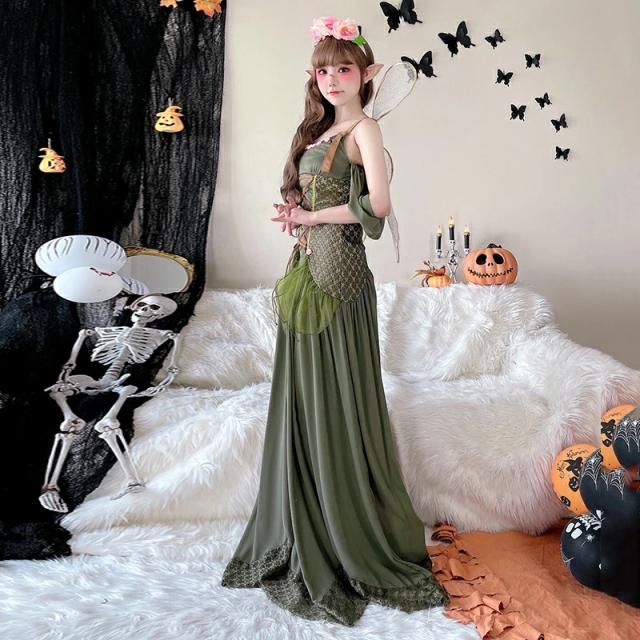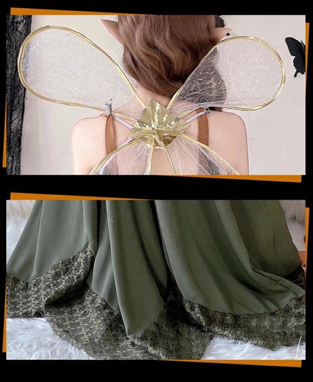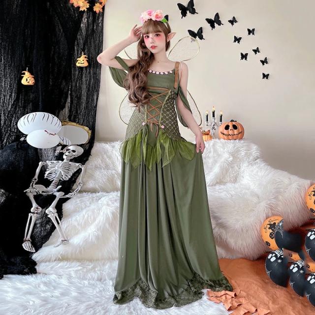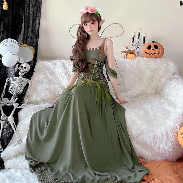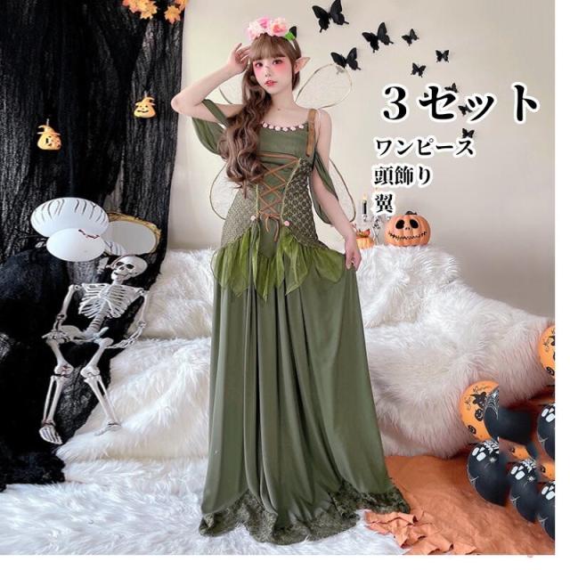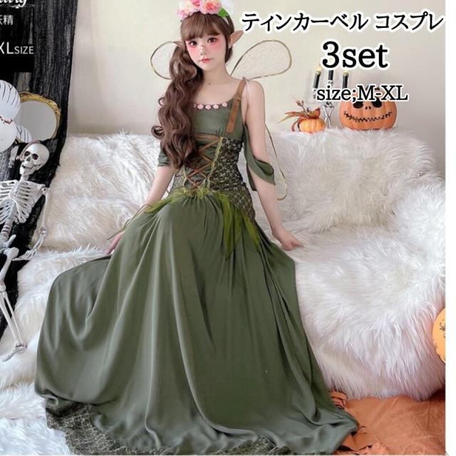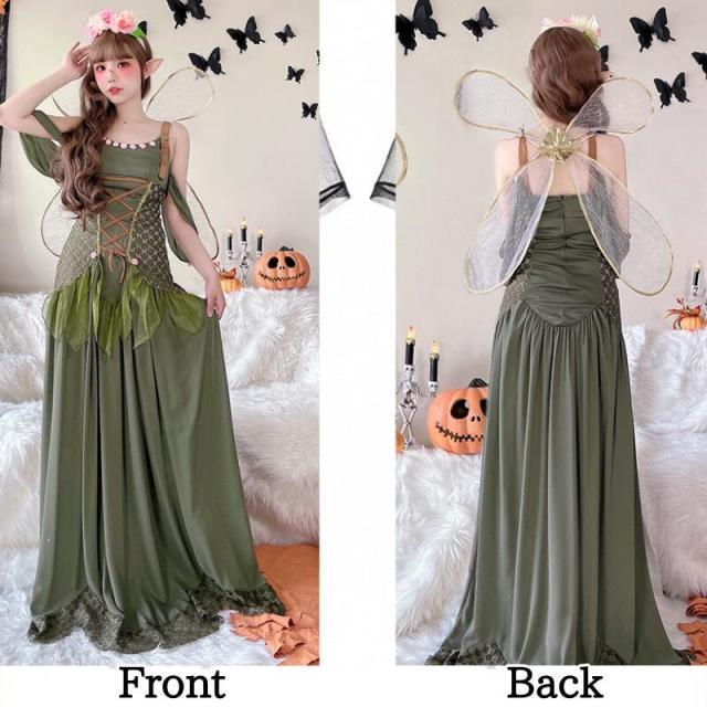 ハロウイン ティンカーベル コスプレ 仮装 大人用 花の精霊 コスプレ精霊衣装風 ガールズ 仮装 羽付 ドレス 翼 妖精 妖精ドレス セクシー なりきり コスプレ 可愛い ロングドレス 衣装 バレンタイン レディース 女性 大人 ワンピース ロング ロングワンピース 大きいサイズ
