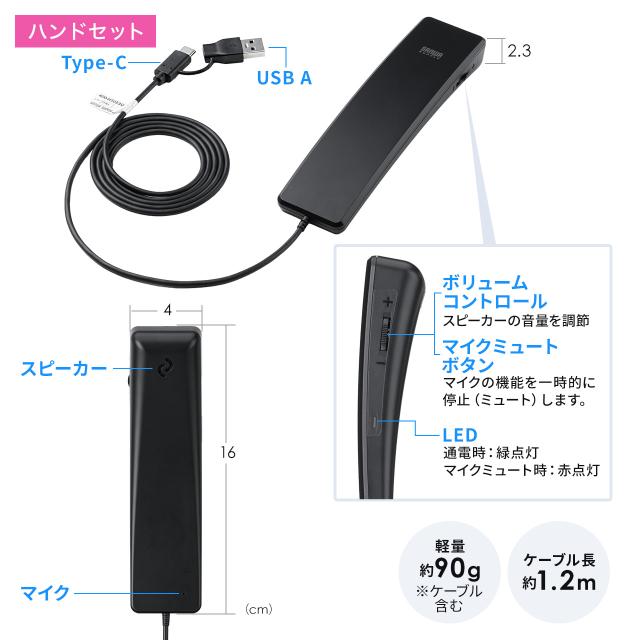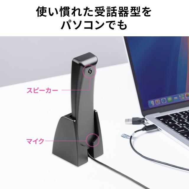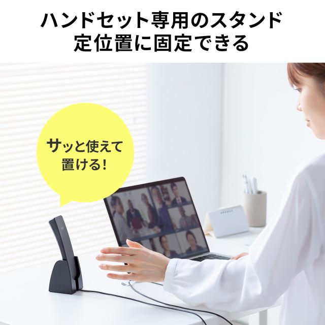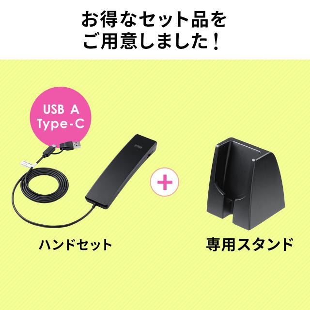 ●USBポートに接続するだけで使用できる、USBハンドセットです。●専用スタンド(400-HS-STN2)とのセット品です。