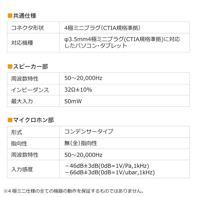 ■対応機種:3.5mm4極ミニプラグに対応したタブレット、スマートフォン、パソコン