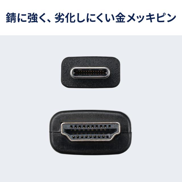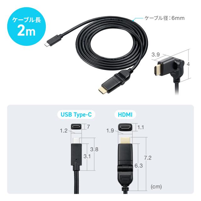 HDMIケーブル USB TypeC-HDMIケーブル 4K60Hz 回転コネクタ 3Dコネクタ 左右180°回転 水平180°回転 2m ブラック[500-KC049]