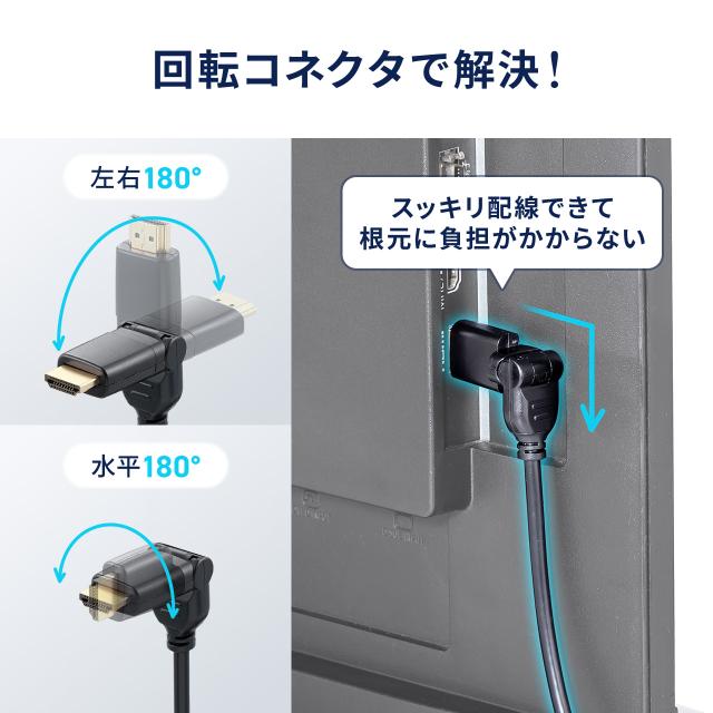 ●HDMIコネクタが回転するため、HDMIコネクタやポートの損傷やケーブルの断線を防ぐことができます。