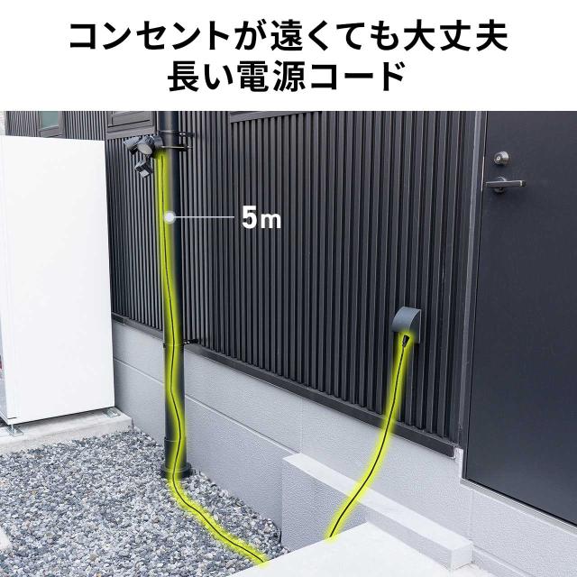 ●IPX5の防雨仕様で屋外設置に対応し、玄関、勝手口、倉庫、ガレージなどに最適です。