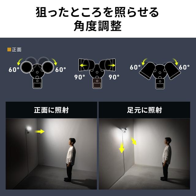 ●ライトの照射角度は上下左右で個別に調整可能で、必要な範囲を狙って照らせます。