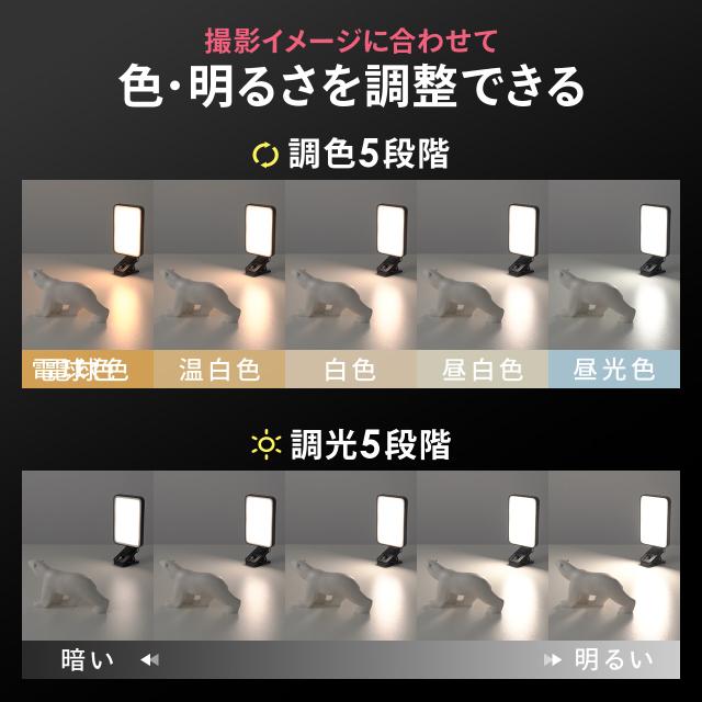 ⇒ご購入の前にご確認下さいスマホ・一眼カメラ対応のコンパクトLEDライト。Ra90の高演色性で自然な色味を再現。色温度5段階・明るさ5段階調整可能。最大5時間駆動、USB給電対応で屋内外の撮影や配信に最適。【WEB限定商品】