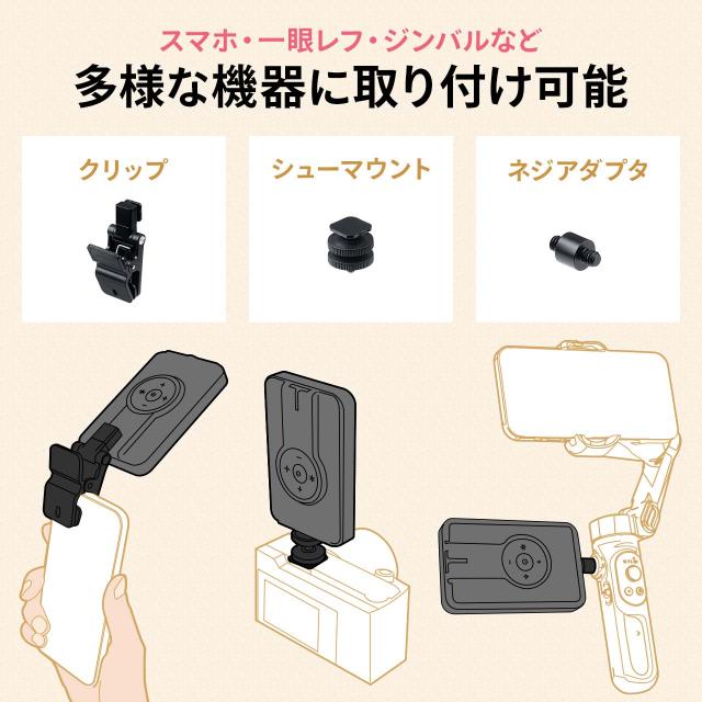 ●スマートフォンや一眼カメラなど様々な撮影機材に取り付けられるLEDライトです。●YouTube動画撮影やSNS用のコンテンツ制作、Zoomなどのオンライン会議、テレワークなど幅広いシーンで使用可能です。