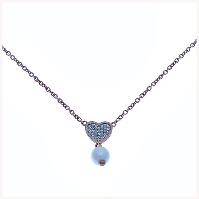 【ウィンターSALE★30%OFF】フォリフォリ Folli Follie ネックレスハート×パール クリスタル付き ピンクゴールド×パールホワイト レディース 中古