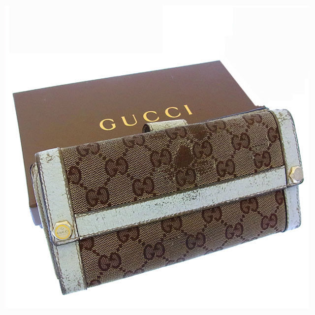 【20%OFFセール中】グッチ GUCCI 長財布GGキャンバス 六角ビット付き ベージュ系×ホワイト×ゴールド レディース 中古
