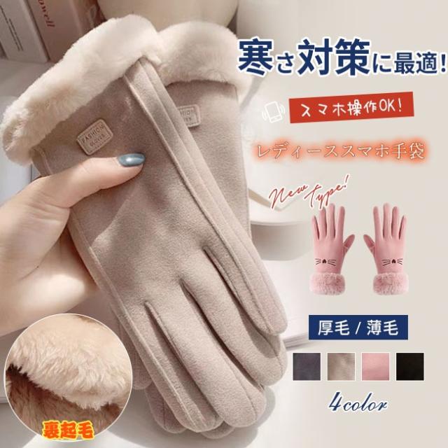即納 手袋 レディース スマホ対応 春冬 おしゃれ かわいい 暖かい スマホ 手ぶくろ 防寒 防風 保温 裏起毛 寒さ対策 お出掛け 黒 手首 スマホ手袋 すべり止め 5本指 通勤 OL 通学 普段使い プレゼント シンプル