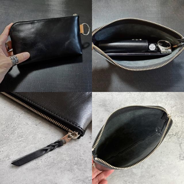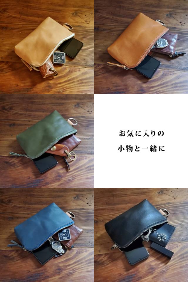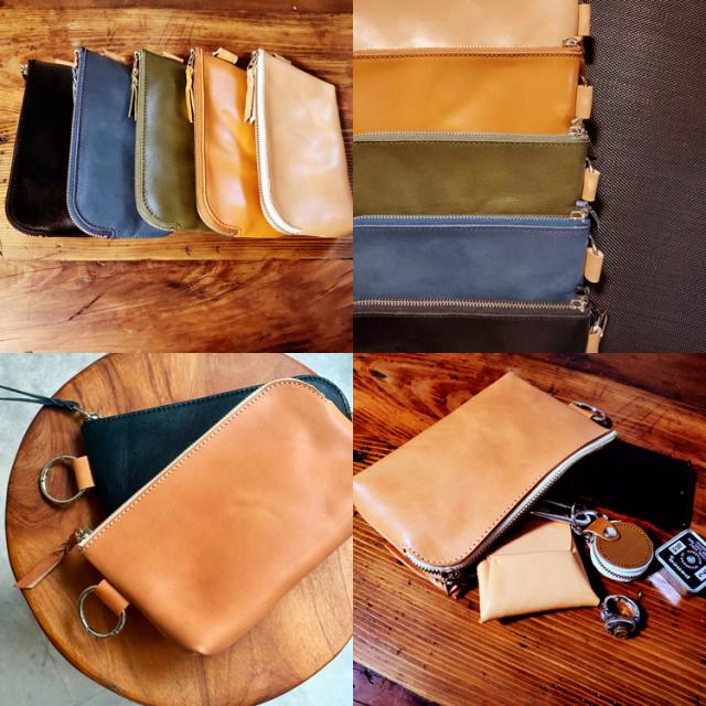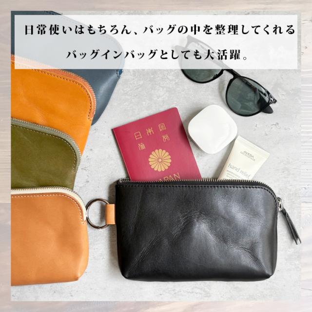 栃木レザー社のベジタブルタンニンレザーを使用した上質なレザーポーチ。