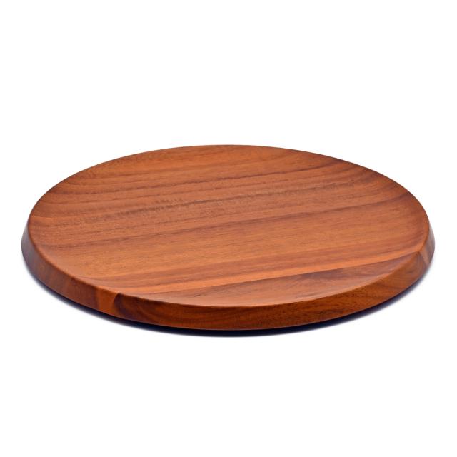 アカシア素材の厚型プレートです。硬くて丈夫で、油分を多く含む材質なので耐久性にも優れています。パンやサラダなどランチメニューの盛り付けにぴったりなサイズです。ナチュラルな木目が料理を引き立て、食卓にやさしい雰囲気をプラスします。