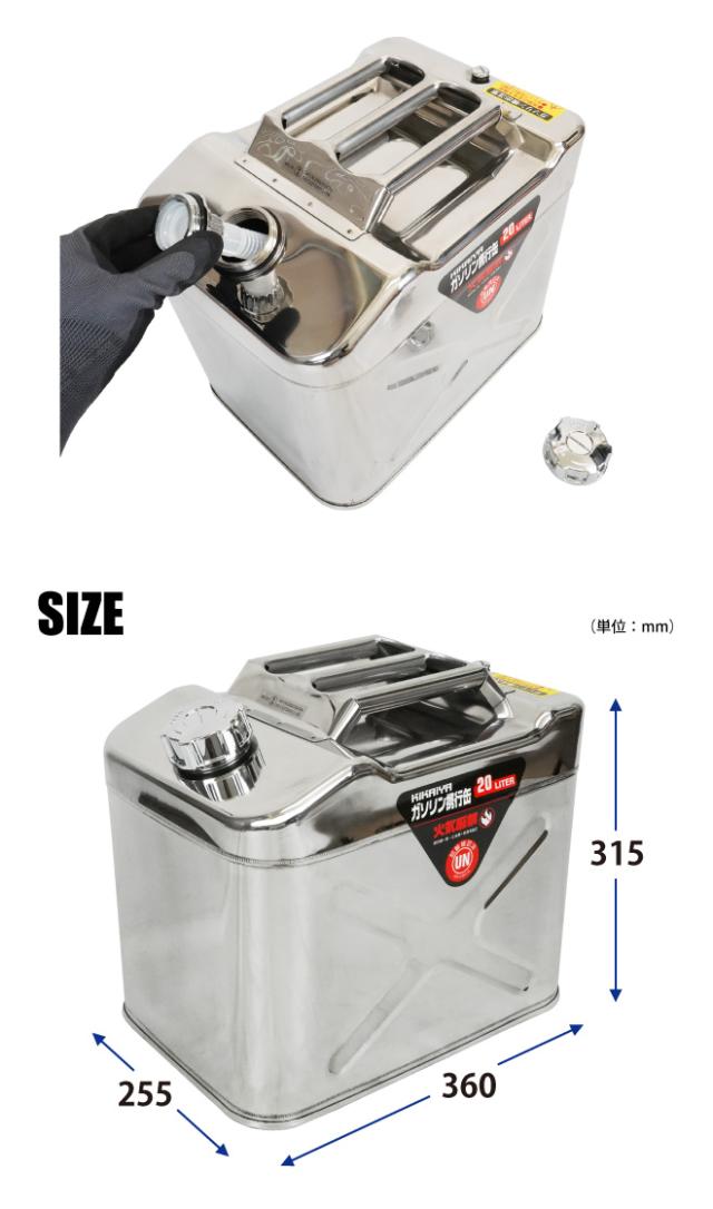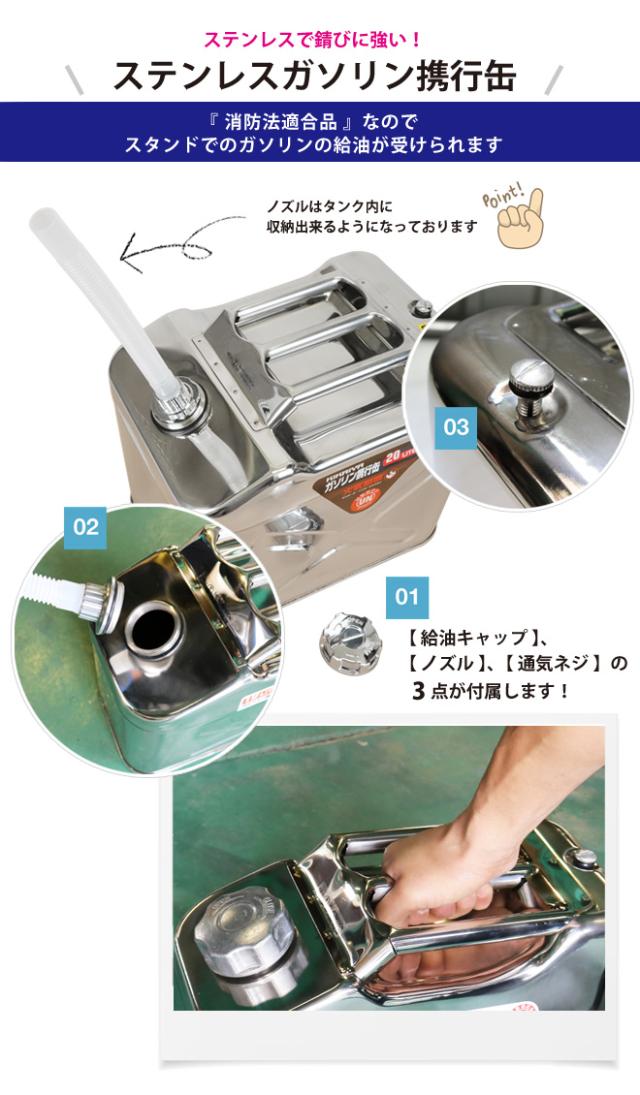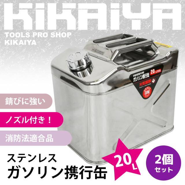 ガソリン携行缶 20L ステンレス 2個セット SUS304 横型 高級 ガソリンタンク ジェリカン 消防法適合品 KIKAIYA