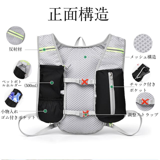 ランニングリュック トレランザック ジョギング サイクリング バック マラソン ベスト 揺れない ハイドレーション対応 反射材 軽量 アウトドア