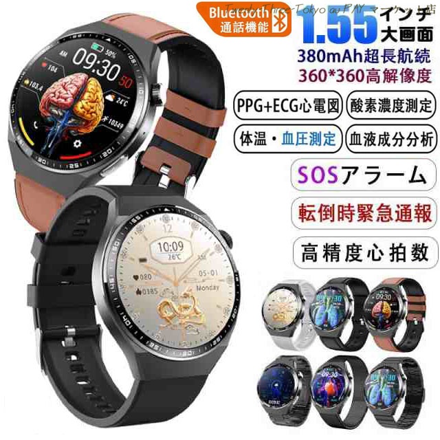2025最新 スマートウォッチ 血糖値 血圧測定 血液成分 BMI体組成 尿酸 血中脂質 通話機能付き 医療レベル心電図ECG 心拍数HRV 血中酸素 睡眠管理 万歩計 SOS警報機能 着信&メッセージ通知 iPhone Android対応
