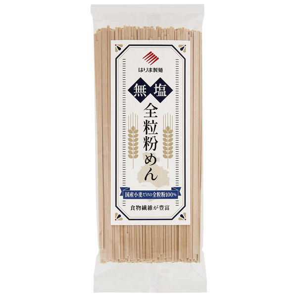 食塩不使用で国産小麦の全粒粉を使用した、食物繊維が豊富な乾麺です。しっかりとしたコシがあり、歯切れとのど越しの良い麺に仕上げています。茹で伸びしにくく、温かいうどんやざるうどんとしてお召し上がりいただくのはもちろん、パスタ麺やラーメンなどのアレンジ麺としてもお召し上がりいただけます。※茹で時間:4分