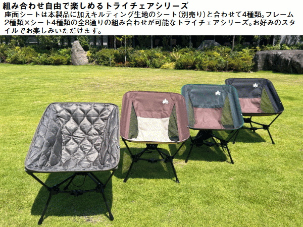 選べる3色&手のひらサイズ収納!コーデ自在なシリーズ専用シート。お好みのフレームと座面を自由に組み合わせて使えるLOGOSトライチェアシリーズ専用の座面シート。落ち着いた印象のバイカラーデザインを採用しアウトドアシーンはもちろんご自宅やベランダにも馴染みます。別売りの2種類の専用フレームと組み合わせてお使い頂けます。包み込まれるようなゆったりとした座り心地で長時間の使用でも快適。キャンプ・フェス・ピクニックなど、さまざまなアウトドアシーンで活躍します。便利な収納袋が付属し手のひらサイズにまでコンパクト収納が可能。収納袋にはバックルが付いており持ち運ぶ際はリュックに外付けでき使用中はフレームに取り付けておけば紛失防止にもなります。■総重量約400g■収納サイズ約縦10×横10×高さ22cm■耐荷重約100kg■主素材:ポリエステル(PVCコーティング)■構成:本体、収納袋■カラー:ベージュ※耐荷重表記は静止荷重による目安です。フレームは別売です。