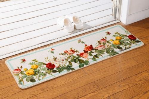 | 【商品紹介】 ボタニカル・アートの天才画家で「バラの宮廷画家」とも呼ばれたピエール=ジョセフ・ルドゥーテの作品【バラ図譜】【美花選】をモチーフにしたゴージャスで華やかなシリーズです。 絵画をそのままキッチンマットにプリントしたような、華やかさがあり踏むのがもったいないほどの高級感があります。 周囲に額のような柄をつけることでより、作品のような雰囲気があります。 裏面にはすべりにくい加工を施しているので、ずれにくく使いやすいです。 四角を丸くカットしているので、捲れにくく足にひっかっかりにくいです。 ご高齢の方から小さなお子様まで皆さんでご使用頂けます。 毛足が丸みおびてるループパイルで、柔らかな踏み心地です。 毛並みもぎっしりしているので、へたりにくく長い間ご使用頂けます。 台所がたちまち華やかになります。 大切な方の誕生日やクリスマスなどのプレゼントにもぴったりのアイテムです。 天才画家ルドゥーテの世界をお部屋でどうぞお楽しみください! |