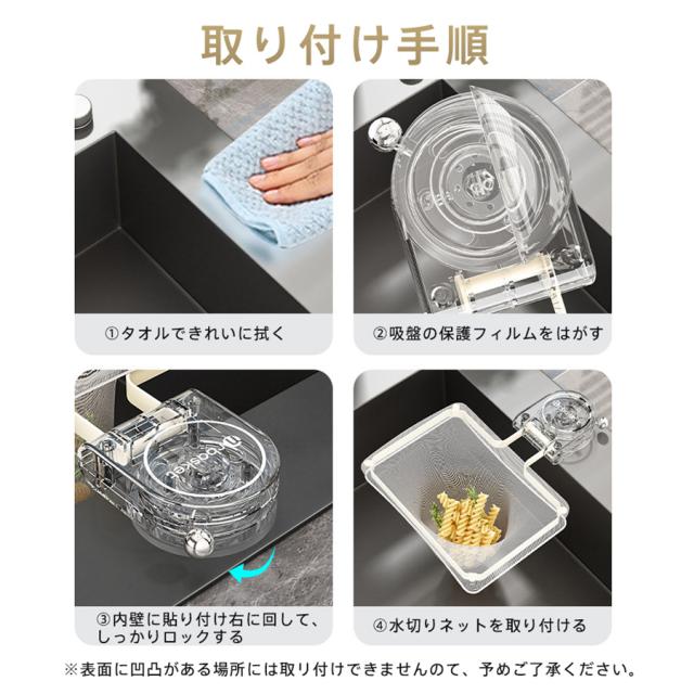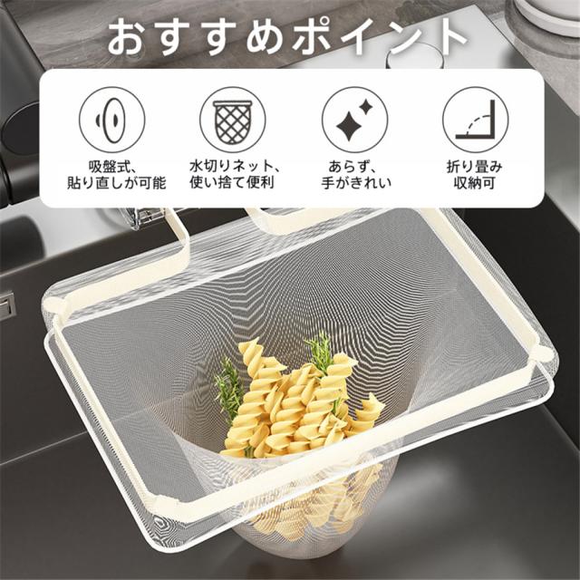 三角コーナー いらず 吸盤式 水切りネット 排水口 ホルダー ゴミ受け 生ゴミ処理 清潔 キッチングッズ 浮かせる 台所 折りたた
