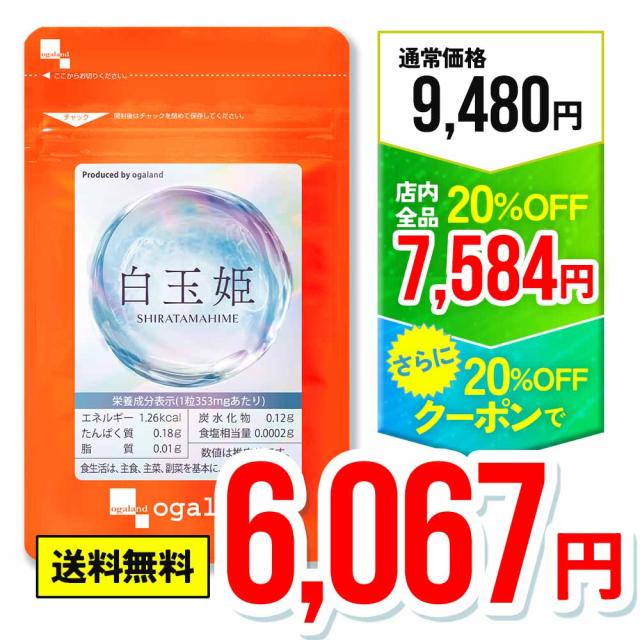 【W割引中!!】白玉姫(約6ヶ月分) 白玉 サプリ 飲む 白玉美容 液 白玉美容 サプリ メーカー推奨量 酵母エキス末 システインペプチド グルタミン酸 システイン サプリメント 女性 グルタチオン(酵母由来) オーガランド 送料無料 健康 美容 国内製造 ポイント消化 19044