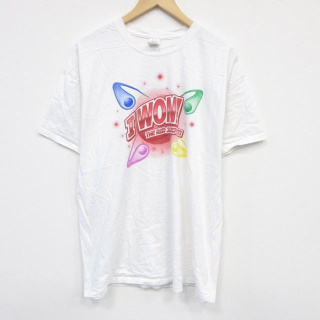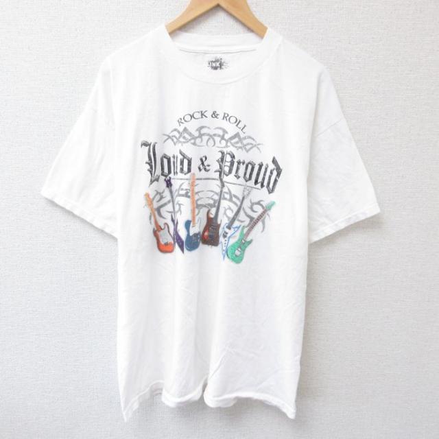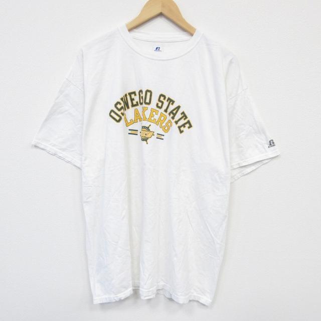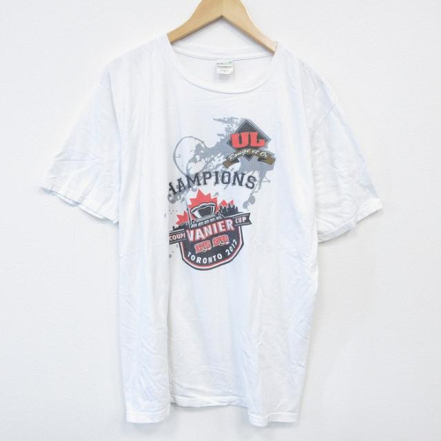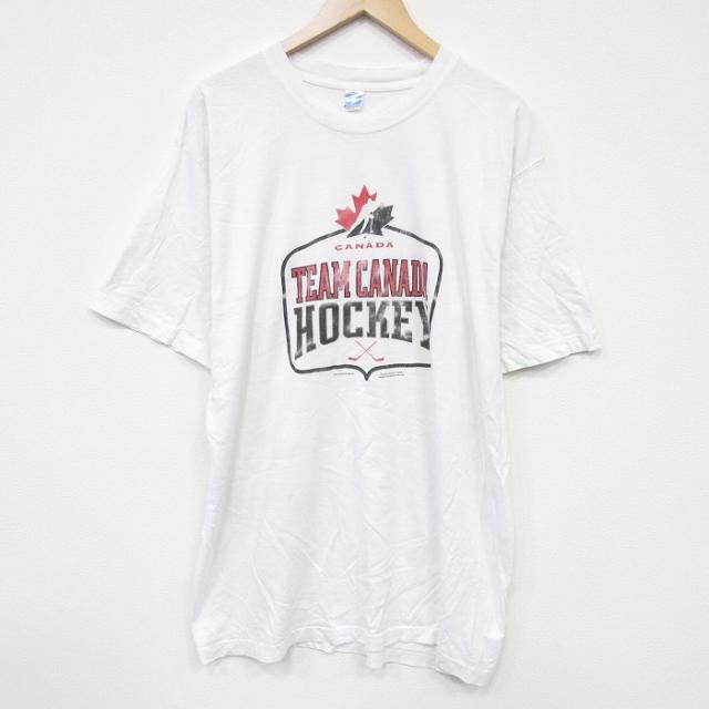 古着 半袖 Tシャツ メンズ アイスホッケー 大きいサイズ ロング丈 コットン クルーネック 白 ホワイト XLサイズ 中古 中古 古着