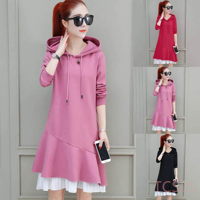 ワンピース フード付き パーカーワンピース レディース 春秋 長袖 スウェットワンピース ゆったり ひざ丈 Tシャツ ワンピース