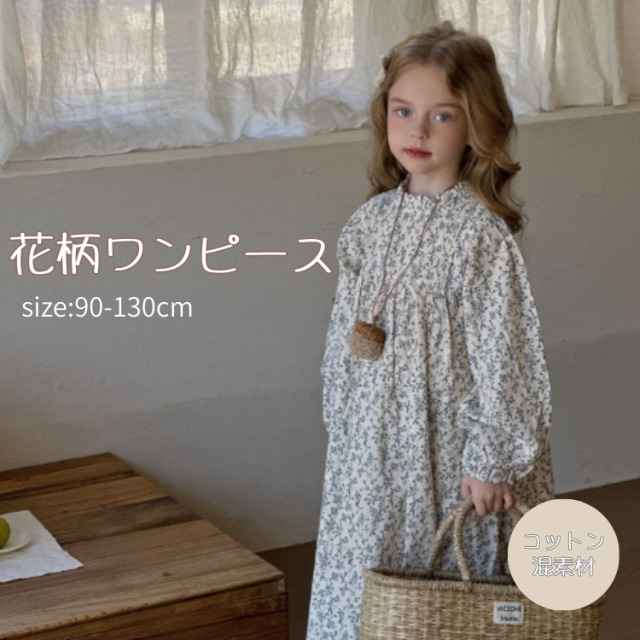 ワンピース 花柄 女の子 キッズ ベビー 子供服 ロングワンピース 長袖 スカート おしゃれ 可愛い 発表会 結婚式 幼稚園 小学生 ドレス コットン 綿 フォーマル 春 夏 秋 ホワイト 通園 卒園 100cm 110cm 120cm 130cm