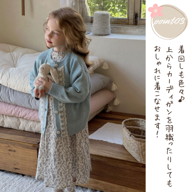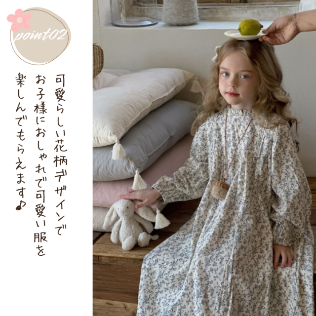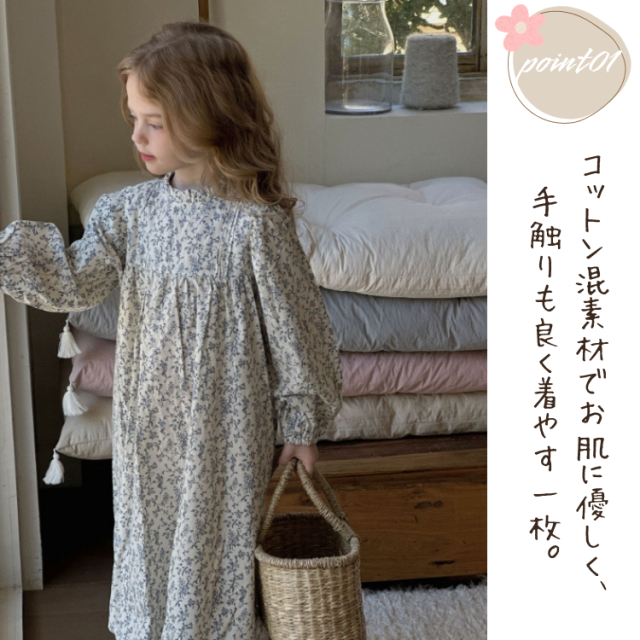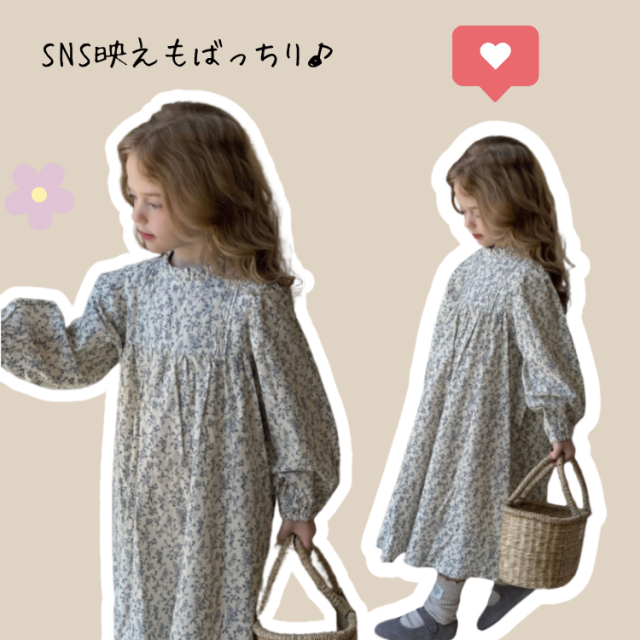 小花柄が上品で、子どもらしい愛らしさを引き立てます。