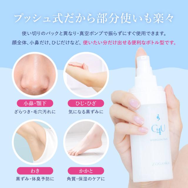 ゾーガンキン G4Uスパークリングパックは重曹(炭酸水素Na)による炭酸パックです。