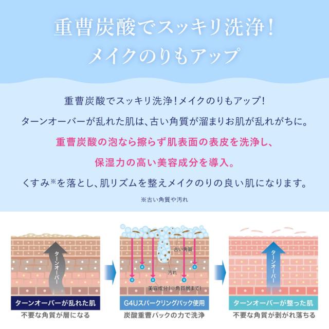 油分を分解する力などが期待され、G4Uスパークリングパックは炭酸にして肌を健やかに導きます。