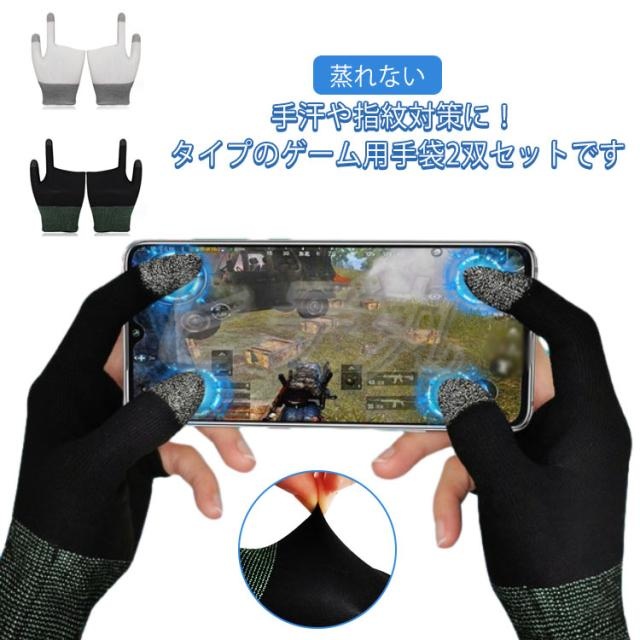 スマホ ゲーム 指サック 手袋 2双セット ゲーム用 音ゲー 二本指手袋 伸縮性 高感度 手汗対策 指紋防止 銀繊維 反応性良好 滑り止め 静電気防止 通気性 蒸れない 親指 人差し指 手のひら 指カバー iPhone/Android/iPad 対応 送料無料
